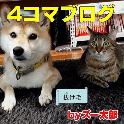 エジプシャンマウのチロと柴犬のコロの4コマ漫画です。 最近カーペットを掃除するとものすごい毛が!!調査の結果、その毛の主の正体判明!!