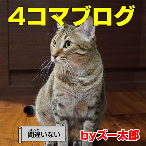 犬と猫の写真を使った4コマ漫画形式のブログです