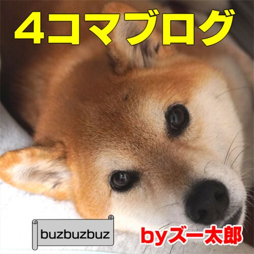 犬と猫の写真を使った4コマ漫画形式のブログです