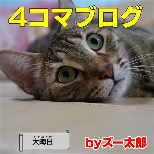 犬と猫の写真を使った4コマ漫画形式のブログです