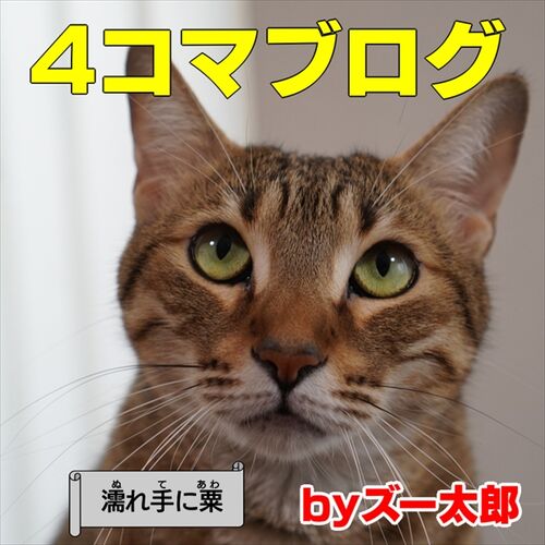 犬と猫の写真を使った4コマ漫画形式のブログです