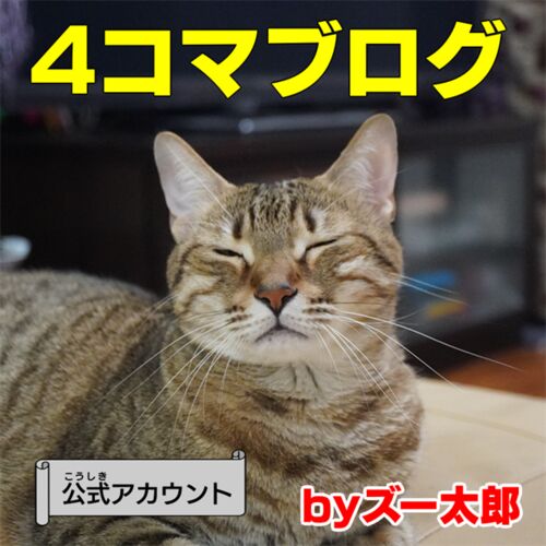 犬と猫の写真を使った4コマ漫画形式のブログです